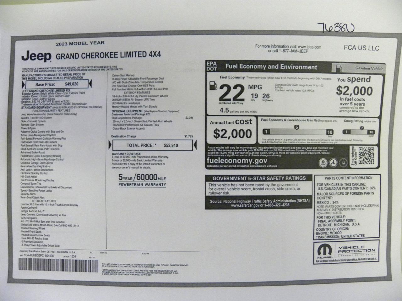 Step into this bright white 2023 Jeep Grand Cherokee where luxury meets performance! With a powerful 3.6L V6 engine under the hood and automatic full-time four-wheel drive, this SUV is ready for any adventure you have in mind. Towing equipment, trailer sway control, and a GVWR of 6,050 lbs ensure you can tow with ease.